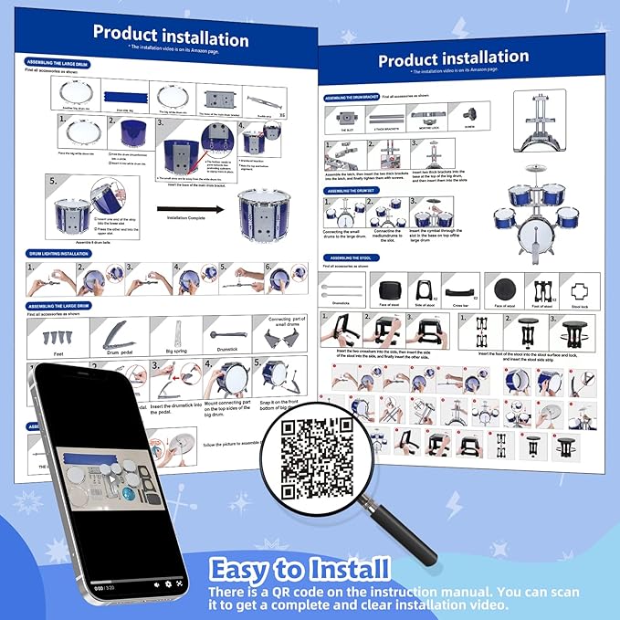 - Perfect Gift for 2-6 Years Old Boys Girls: Ideal drum set for beginners aged 2-6, making it a perfect birthday or Christmas gift for 2 3 4 5 6 years old boys and girls to spark their interest in music and creativity.
