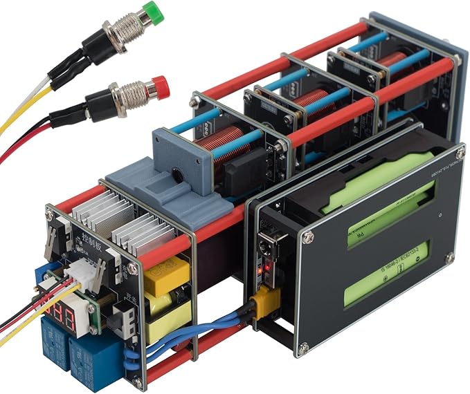 Electromagnetic Accelerator Gun Cannon High Voltage, DIY Integration Multi-Level Coil Kit, for Science Physics Teaching Experiment Tool College Education Model, High-Tech Toys,Integrated Boost Circuit