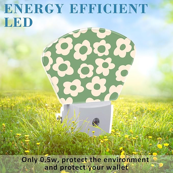 Vintage Green Flowers Night Light, Groovy Flowers Nightlight Plug into Wall with Dusk to Dawn Sensor for Kid Girls Boys Women Men Bedroom, Hallway, Kitchen, Bathroom, Stairs Decor