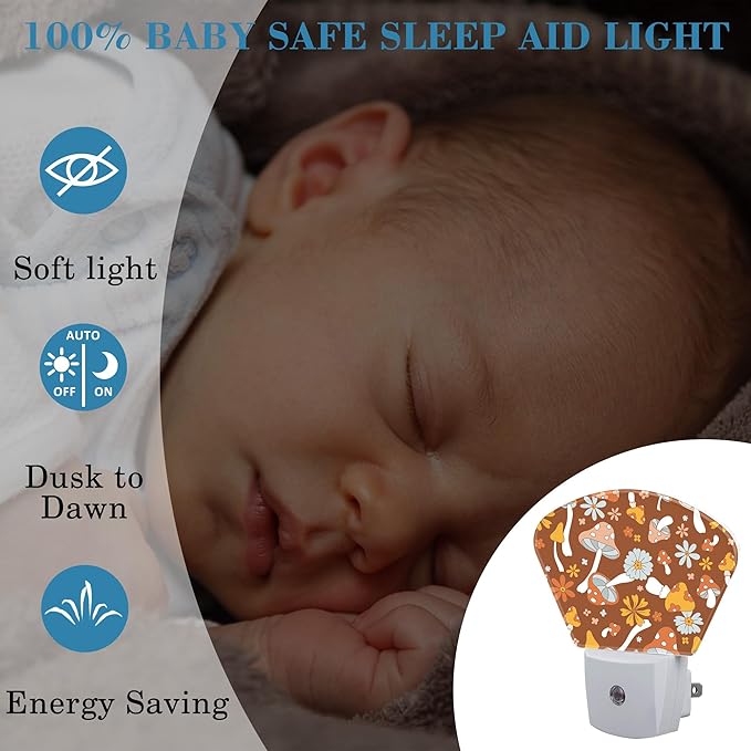 - [Night Light Socket Design]: This Vintage Mushrooms LED night light can be directly plugged into the wall socket, which is convenient and practical. Its compact design doesn't take up much space and can easily provide soft lighting for your kids, baby room, stairs and more.