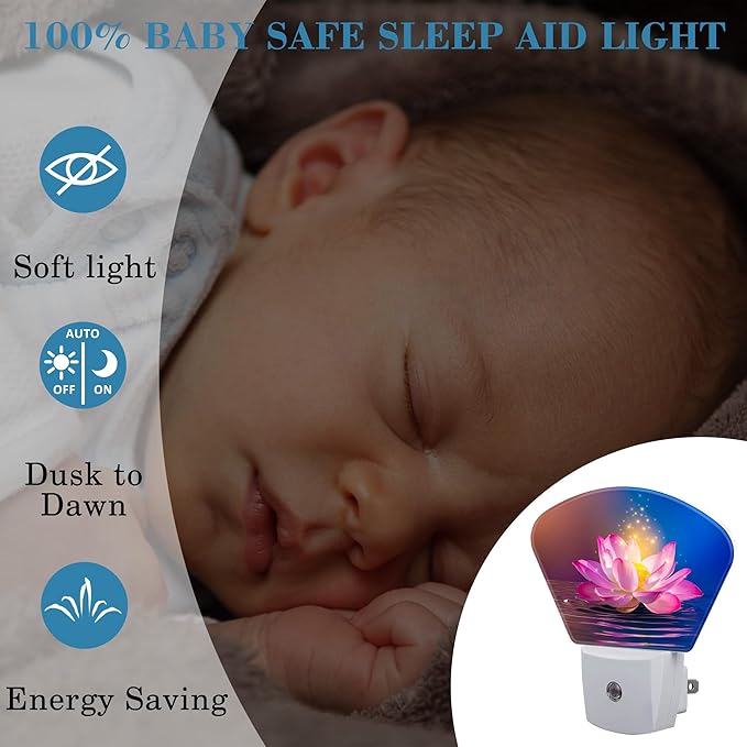 - [Night Light Socket Design]: This Magic Pink Lotus Flower LED night light can be directly plugged into the wall socket, which is convenient and practical. Its compact design doesn't take up much space and can easily provide soft lighting for your kids, baby room, stairs and more.