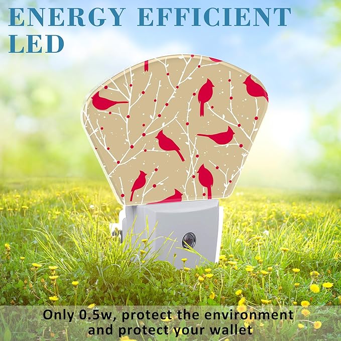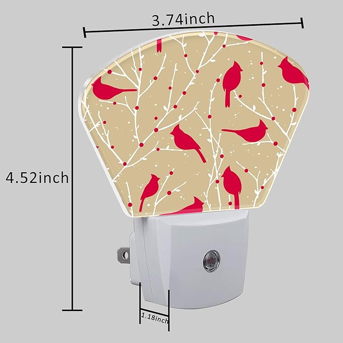 - [Night Light Socket Design]: This Christmas Red Cardinal Bird LED night light can be directly plugged into the wall socket, which is convenient and practical. Its compact design doesn't take up much space and can easily provide soft lighting for your kids, baby room, stairs and more.