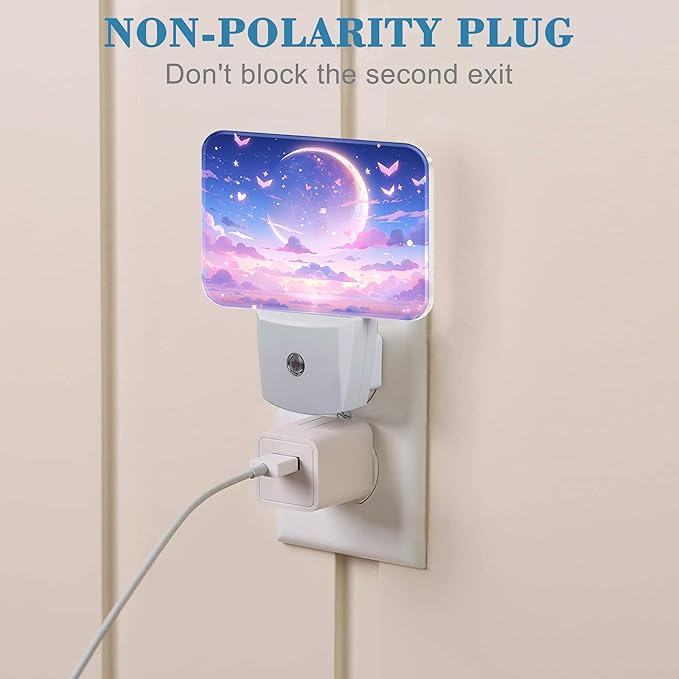 - [Dusk to Dawn Sensing]: Pink Dream Starry Sky Night Light equipped with a dusk to dawn sensing function, it will automatically turn on at night or in a dimly lit environment, and automatically turn off in the morning or in sufficient light. This smart sensor design saves power and is convenient, so you don't need to switch manually.