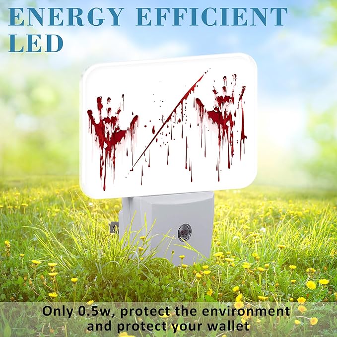 - [Night Light Socket Design]: This Halloween Horror Bloody Handprints LED night light can be directly plugged into the wall socket, which is convenient and practical. Its compact design doesn't take up much space and can easily provide soft lighting for your kids, baby room, stairs and more.