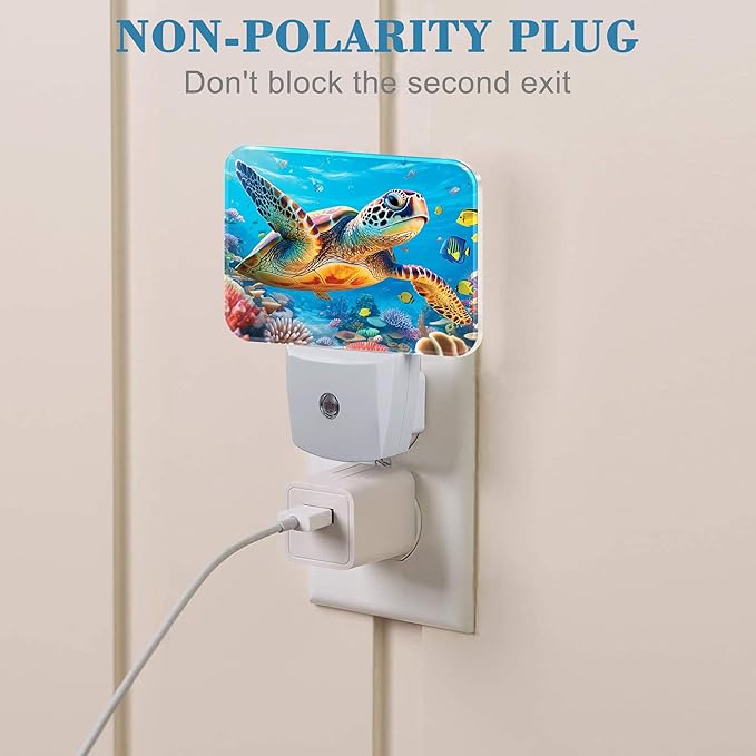 - [Night Light Socket Design]: This Sea Turtles In Underwater World LED night light can be directly plugged into the wall socket, which is convenient and practical. Its compact design doesn't take up much space and can easily provide soft lighting for your kids, baby room, stairs and more.