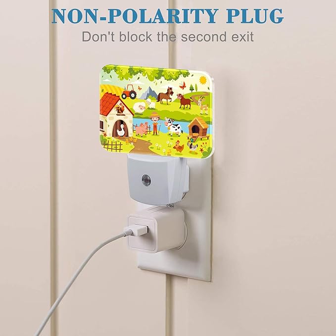 - [Night Light Socket Design]: This Cartoon Farm Life LED night light can be directly plugged into the wall socket, which is convenient and practical. Its compact design doesn't take up much space and can easily provide soft lighting for your kids, baby room, stairs and more.