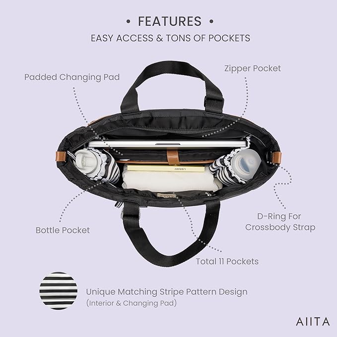 - Stylish and Versatile:Elevate your parenting game with our diaper tote bag, designed for both style and versatility. Carry it effortlessly as a shoulder bag, cross-body, or even as a backpack to suit your needs throughout the day. Its sleek, chic design complements any outfit, making it a fashionable choice for modern moms. Perfect for busy lifestyles, this tote combines practical functionality with a stylish edge, ensuring you look and feel great while managing your baby's essentials.