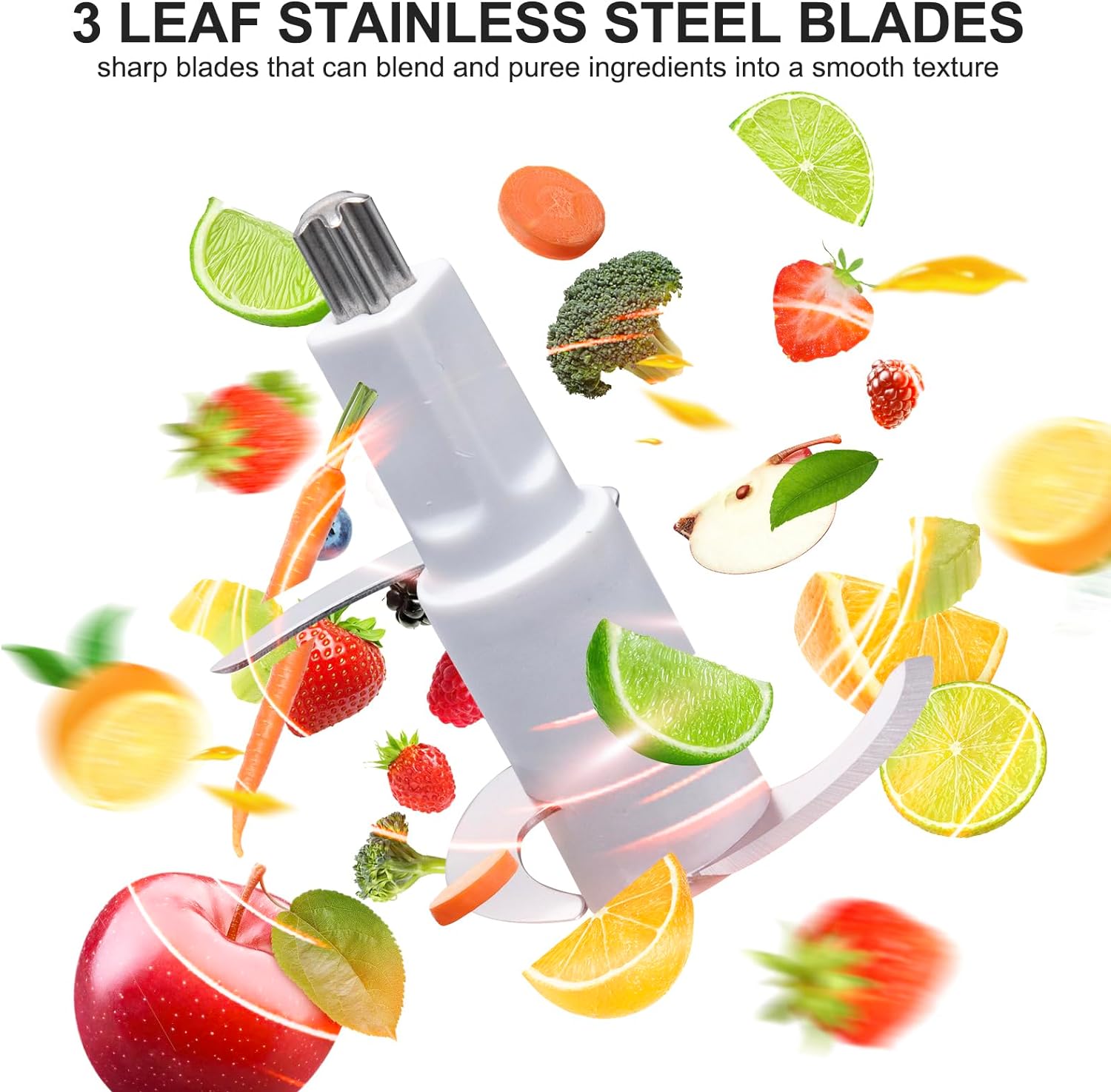 - Quick and Effortless Operation: Features three sharp blades and a high-power motor for fast and efficient blending. Press to start, release to stop—create baby food with the perfect consistency in seconds. Operates quietly, so you can prepare meals without disturbing naptime
