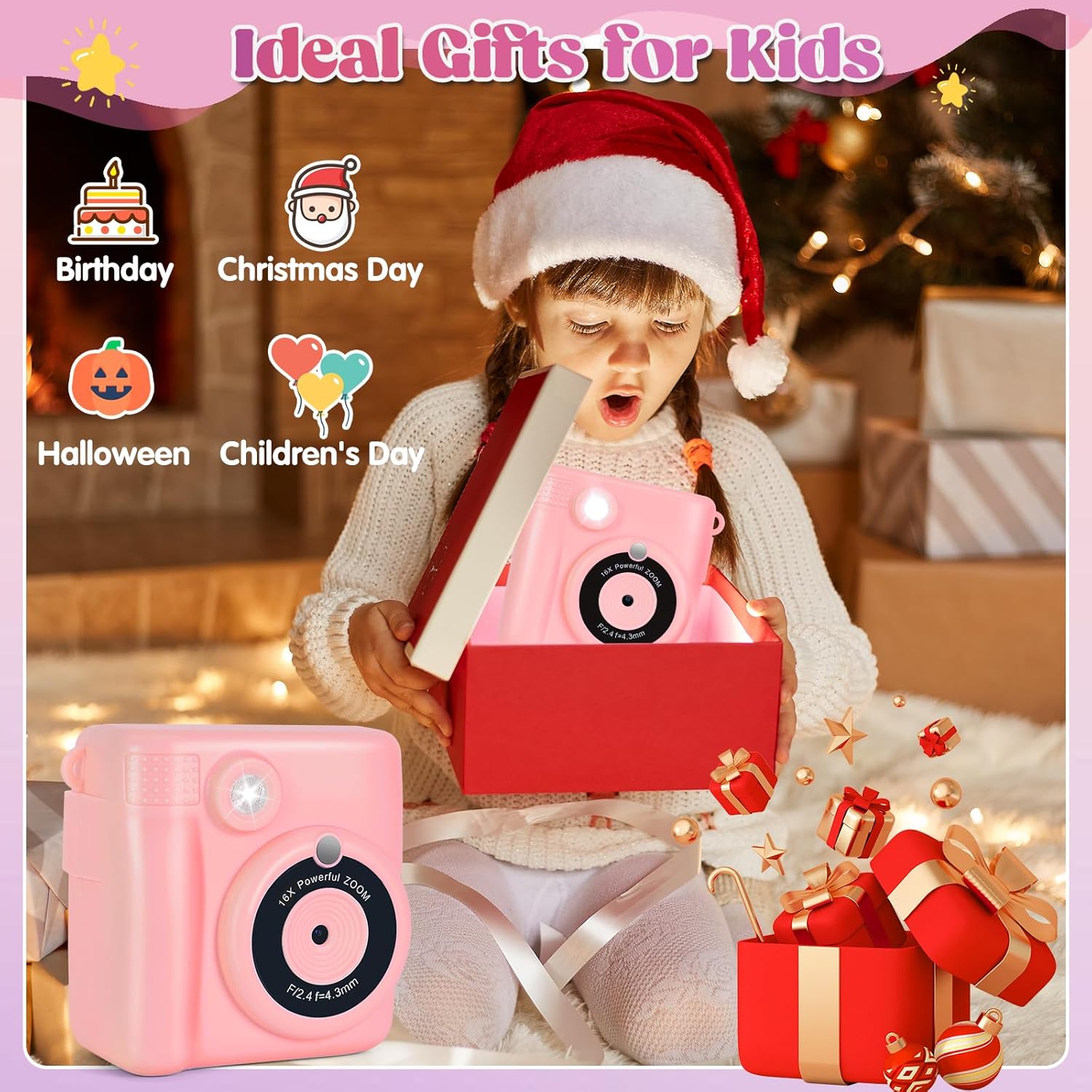 Instant Print Camera for Kids - 2.4 Inch Kids Camera Instant Print with Paper & 32G Card- Digital Children Toys as Christams Birthday Gifts for Girls Boys Age 3-12 - Pink