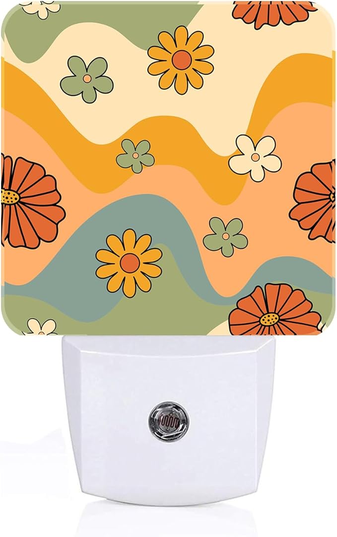 Waves and Floral Night Light,Plug Into Wall for Boys Girls Bedroom Decorative Square Night Light Lamp 0.5w Sleep Friendly