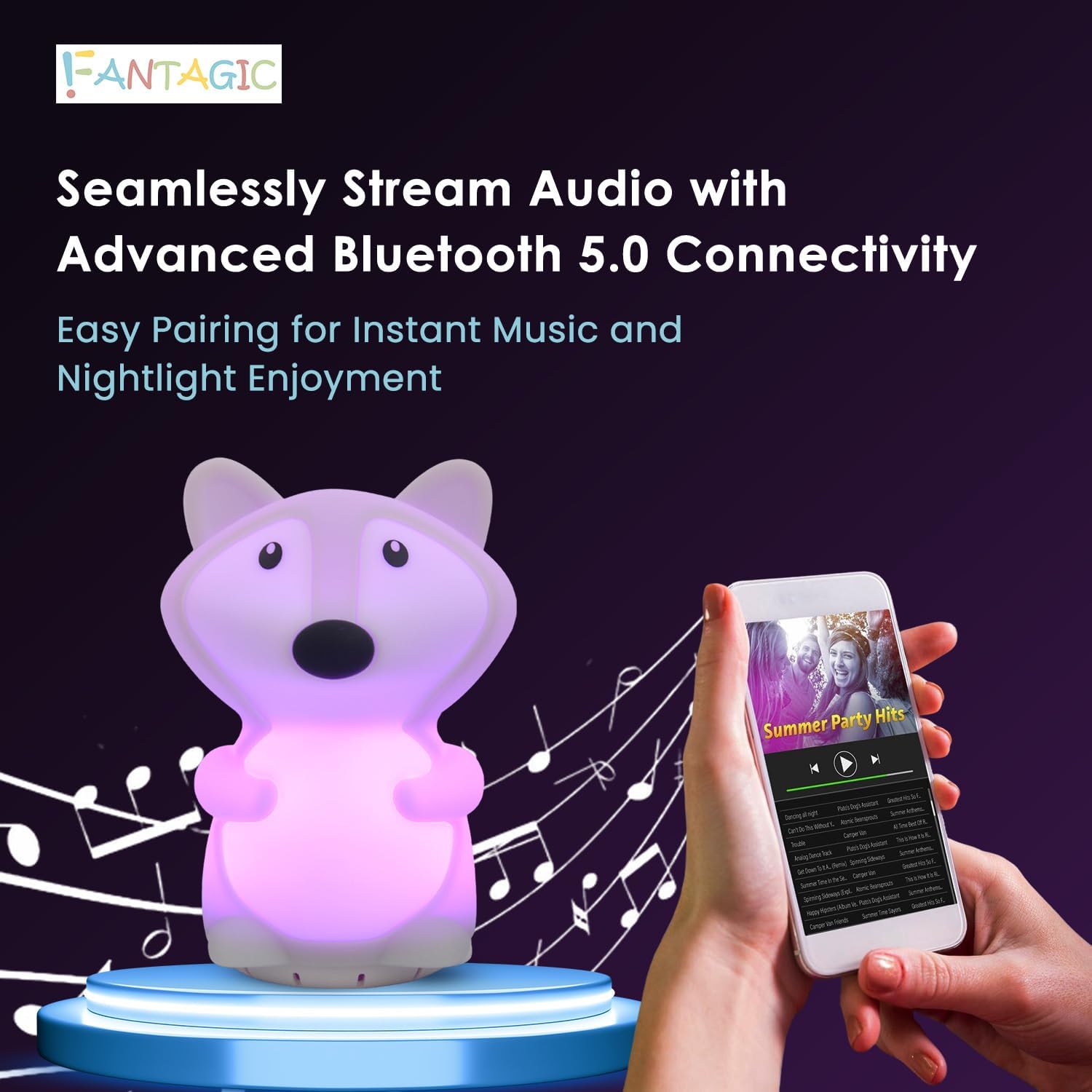- Wireless Connectivity: Seamlessly stream audio from your devices via Bluetooth 5.0 technology. Just simply pair your device and the nightlight speaker as you would with any other bluetooth speaker.