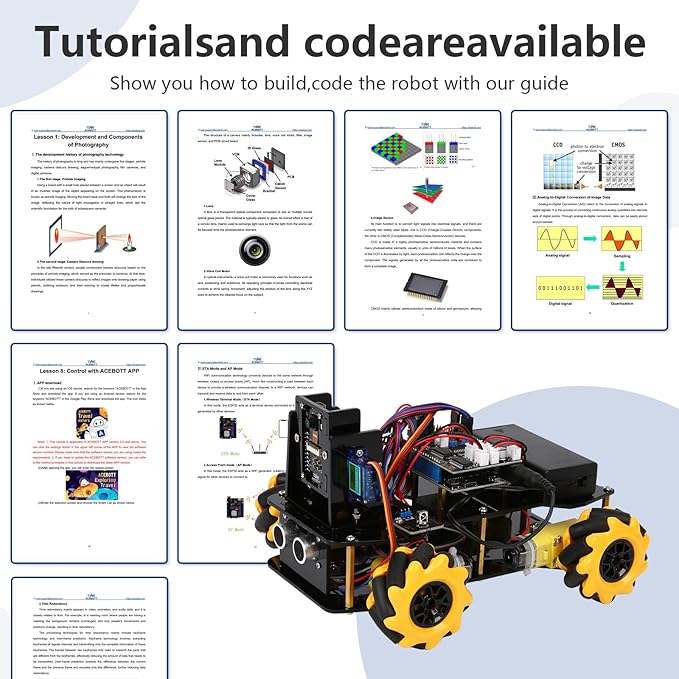 - STEM Education Kit (excluding basic car): The ACEBOTT smart robot car kit provides an excellent platform for STEM education with its easy-to-program ESP32 controller, rich function expansion and all-round control design, helping students master programming, electronic hardware principles and robotics through practical operating systems, and stimulate creativity and problem-solving skills. It is a perfect New Year gift for programming enthusiasts and teenagers.