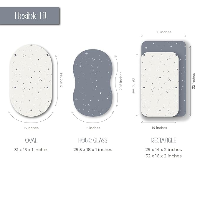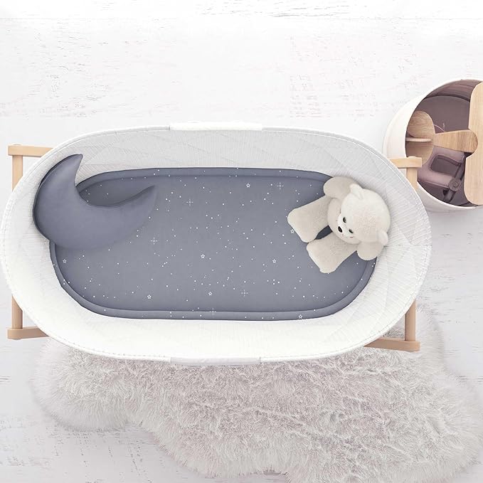 - Perfect Fit for Standard Bassinet Mattresses: Designed with a universal fit in mind, our bassinet sheet measures 32x16x3 inches, making it ideal for most standard bassinet mattresses and mini co-sleepers. It snugly fits oval (31”x15”x1”), hourglass (29.5”x18”x1”), and rectangular mattresses ranging from 29”x14”x2” to 32x16x2”. Our bassinet sheets are compatible with popular brands like the HALO BassiNest Swivel Baby Bassinet, UPPAbaby Bassinet and Dream On Me Karley Baby Bassinet.