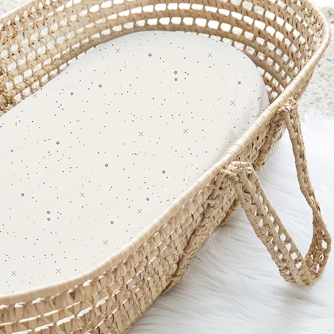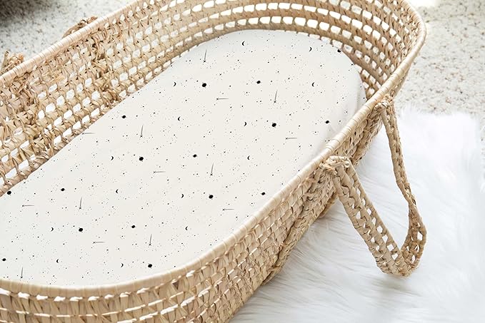 - Perfect Gift for Baby Boys & Girls: Bundled in charmingly cute and compact packaging, this 2-pack sheet set makes for the perfect baby shower gift. Include this breathable, and soft bassinet sheet set in Black and White Celestial Print to your gift registry, ensuring comfort and style for the newest addition to your family.