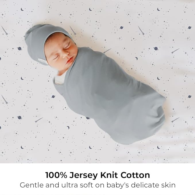 - Premium Jersey Cotton: Crafted from 100% jersey knit cotton, these fitted sheets offer a soft, breathable layer for your baby's delicate skin. The naturally stretchable, wrinkle-free fabric ensures a snug and cozy fit.