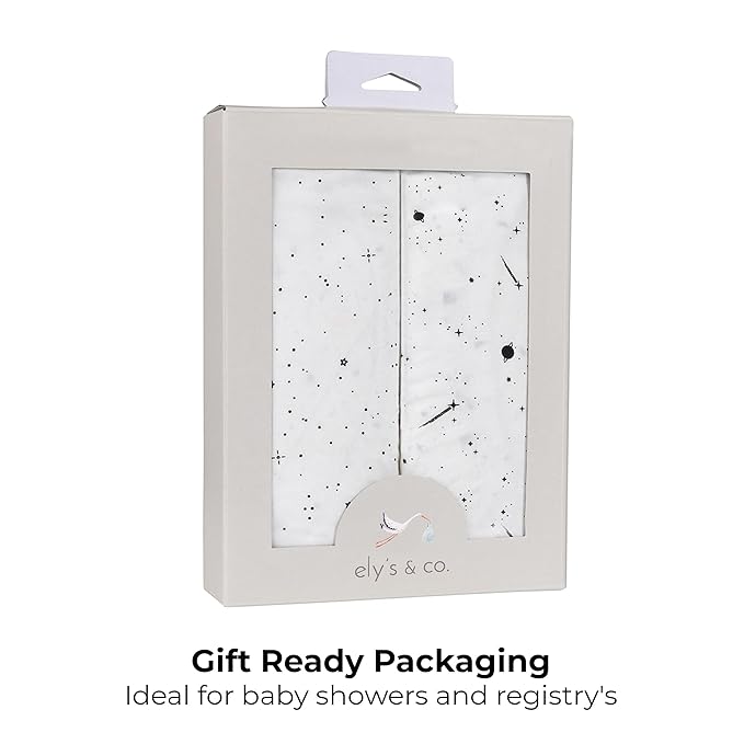 - Celestial-Inspired Design: Elevate your baby’s nursery with the Ely’s & Co. Fitted Pack and Play Mattress Sheet Set– a premium 2 pack of baby pack n play sheets. This set features a delightful Black and White Celestial Print, adding a touch of cosmic charm to your nursery décor.