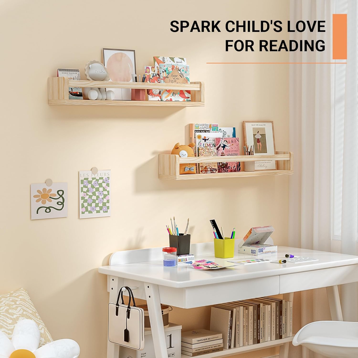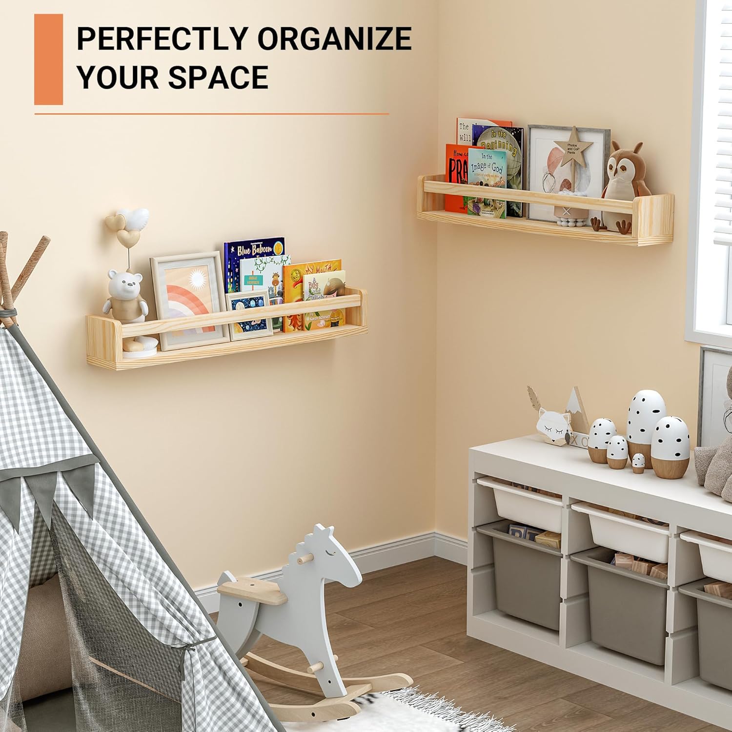 Heimlove Nursery Floating Shelves, Wood Nursery Book Shelves for Wall, 24 inch Wall Bookshelf for Kids Solid Wood for Books,Toys and Decor Storage, Set of 3