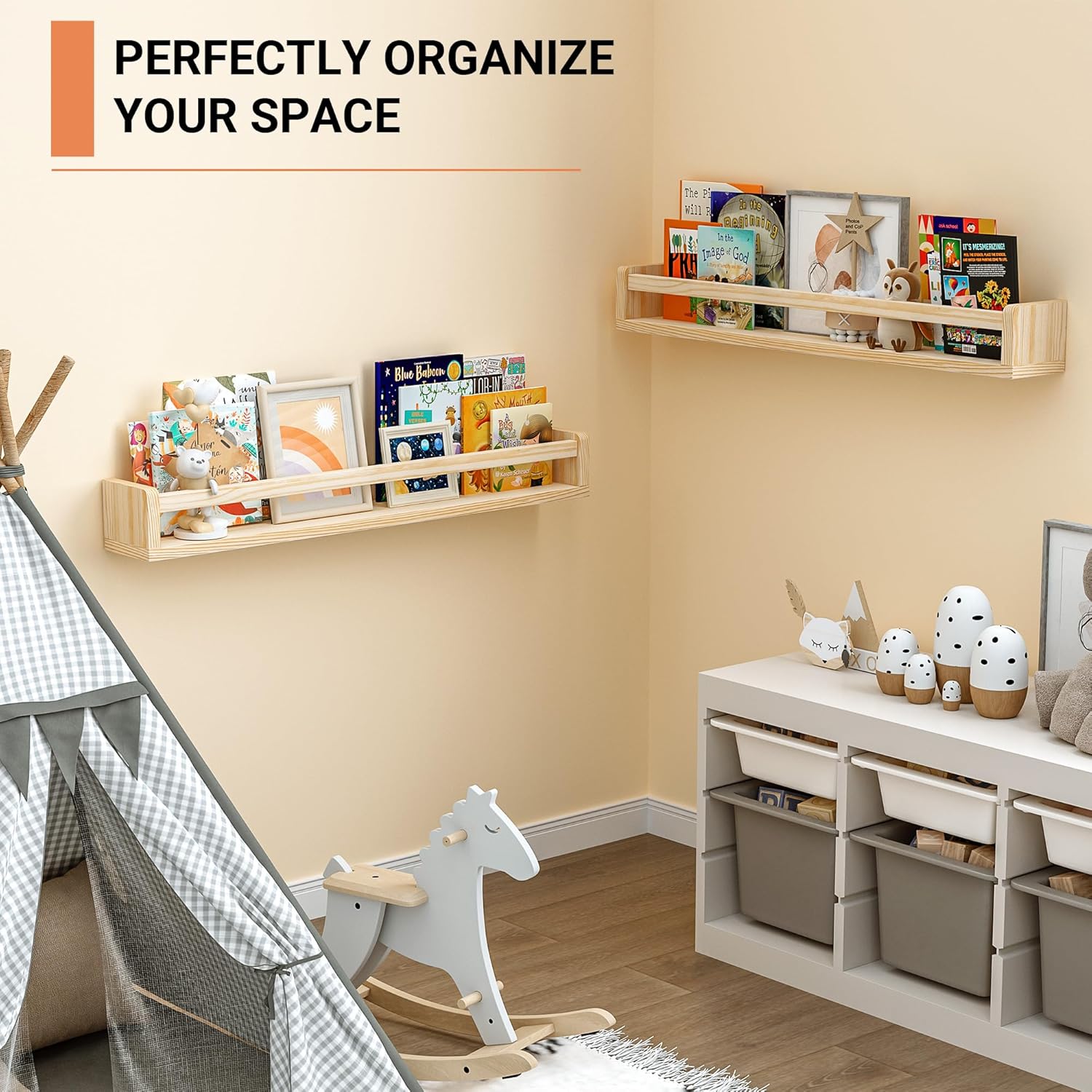 Heimlove 32 Inch Nursery Floating Shelves, Wood Nursery Book Shelves for Wall, Wall Bookshelf for Kids Solid Wood Wall Mounted Shelves for Books,Toys and Decor Storage, Set of 2