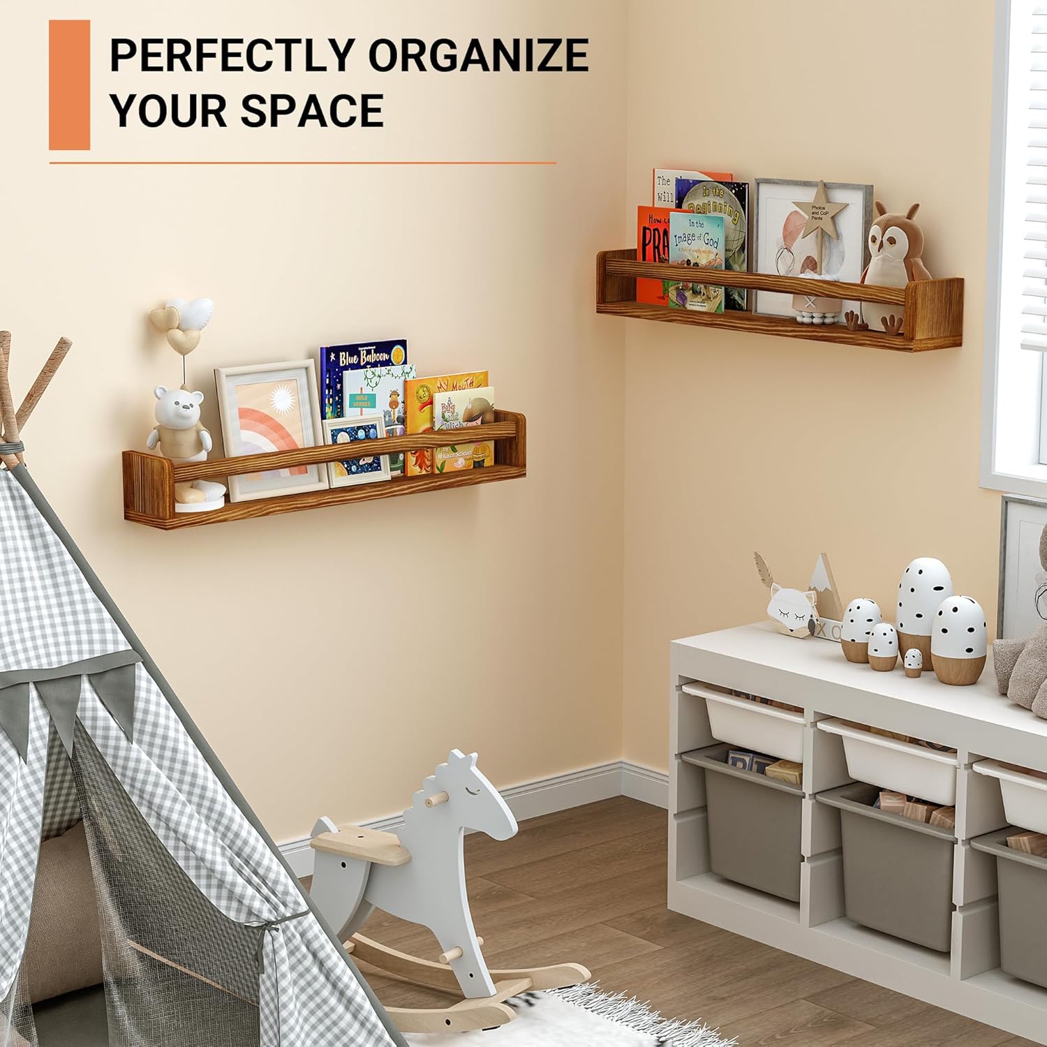 Heimlove 24 Inch Nursery Floating Shelves, Nursery Book Shelves for Wall, Wall Bookshelf for Kids Solid Wood Wall Mounted Shelves for Books,Toys and Decor Storage, Set of 2