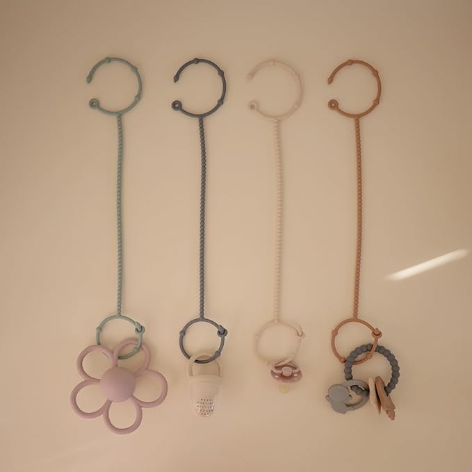 - Ready for Families On The Go: Mushie's adjustable silicone straps keep baby essentials secure so parents and littles on-the-go can enjoy more peaceful outings. Help prevent dropped toys, pacifiers, and sippy cups with these versatile holders designed to attach to strollers, high chairs, car seats, and more.
