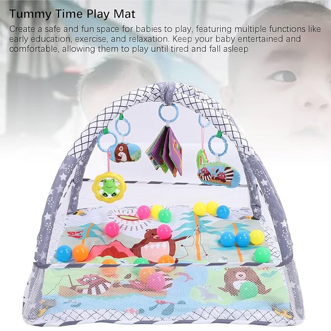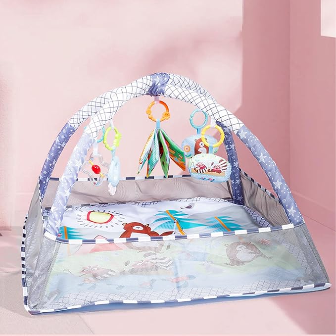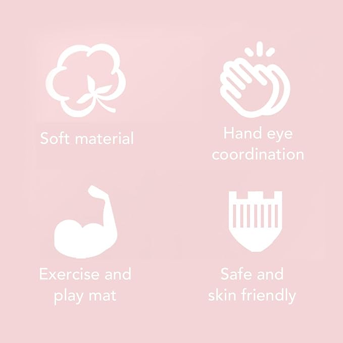 - 【Soft Cotton Material】: Made of breathable sweat-wicking fabric, soft cotton plastic. The cute crawling mat features rounded edges, secure hanging toys, and a stable fabric tube frame for added safety and comfort