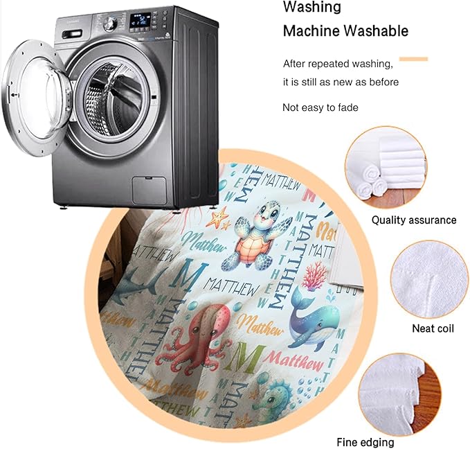 - 【Soft Flannel Blankets】 Personalized Sea Animals throw blankets are made of premium anti-pilling flannel, Soft to touch, warm to cover. Hand and machine washable, it will not shrink or fade. 5 size available: 40*30inches for Kids;50*40inches for Kids;60*50inches for Teens;80*60inches for Adults;120*90inches for Family.