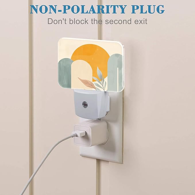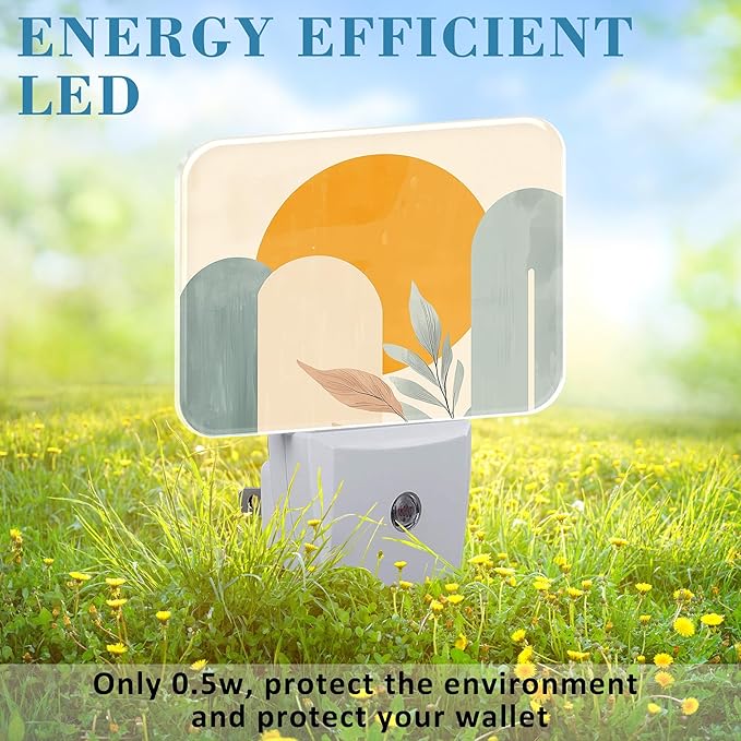 - [Energy saving]: Made with high-quality plastic, this Boho Sun and Leaves nightlight has a long lifespan of over 20000 working hours without bulb replacement, and it consumes less than 50 cents annually for power consumption. Its well-designed mini outlook is space-saving and doesn't block the bottom outlet for other devices.