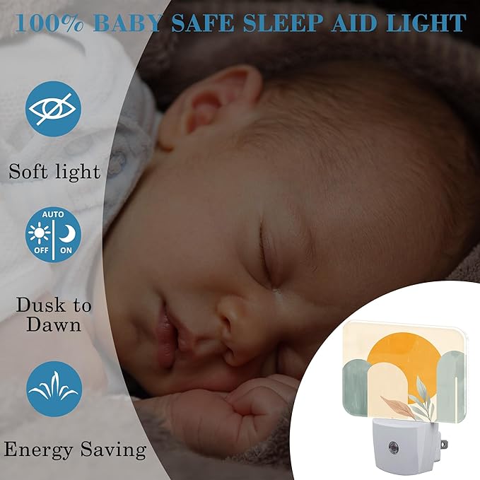 - [Night Light Socket Design]: This Boho Sun and Leaves LED night light can be directly plugged into the wall socket, which is convenient and practical. Its compact design doesn't take up much space and can easily provide soft lighting for your kids, baby room, stairs and more.