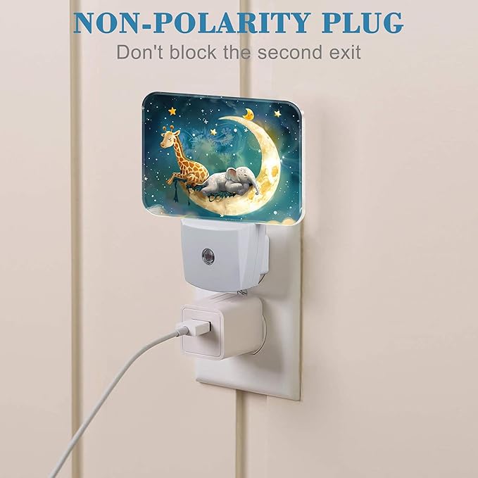 - [Night Light Socket Design]: This Cute Giraffe and Elephant Sleeping On Moon LED night light can be directly plugged into the wall socket, which is convenient and practical. Its compact design doesn't take up much space and can easily provide soft lighting for your kids, baby room, stairs and more.