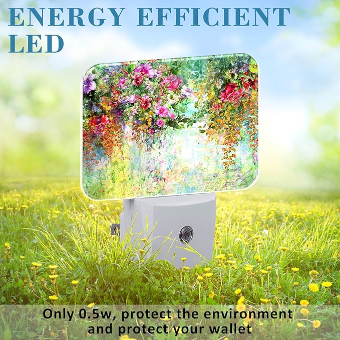 - [Dusk to Dawn Sensing]: Abstract Watercolor Flowers Night Light equipped with a dusk to dawn sensing function, it will automatically turn on at night or in a dimly lit environment, and automatically turn off in the morning or in sufficient light. This smart sensor design saves power and is convenient, so you don't need to switch manually.