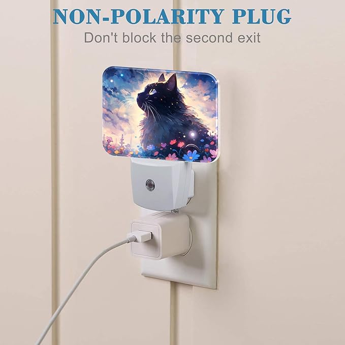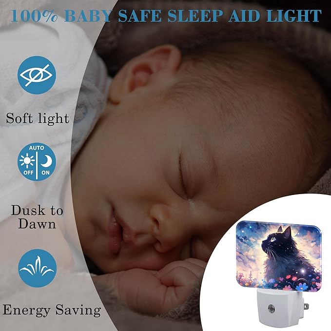 - [Night Light Socket Design]: This Cartoon Cute Black Cat LED night light can be directly plugged into the wall socket, which is convenient and practical. Its compact design doesn't take up much space and can easily provide soft lighting for your kids, baby room, stairs and more.