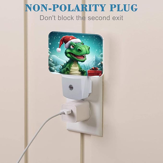 Chrismas Night Light for Kids Girls Boys, Cute Christmas Dinosaur LED Night Light Plug into Wall with Dusk to Dawn Sensor for Room, Hallway, Kitchen, Bathroom, Stairs Decor