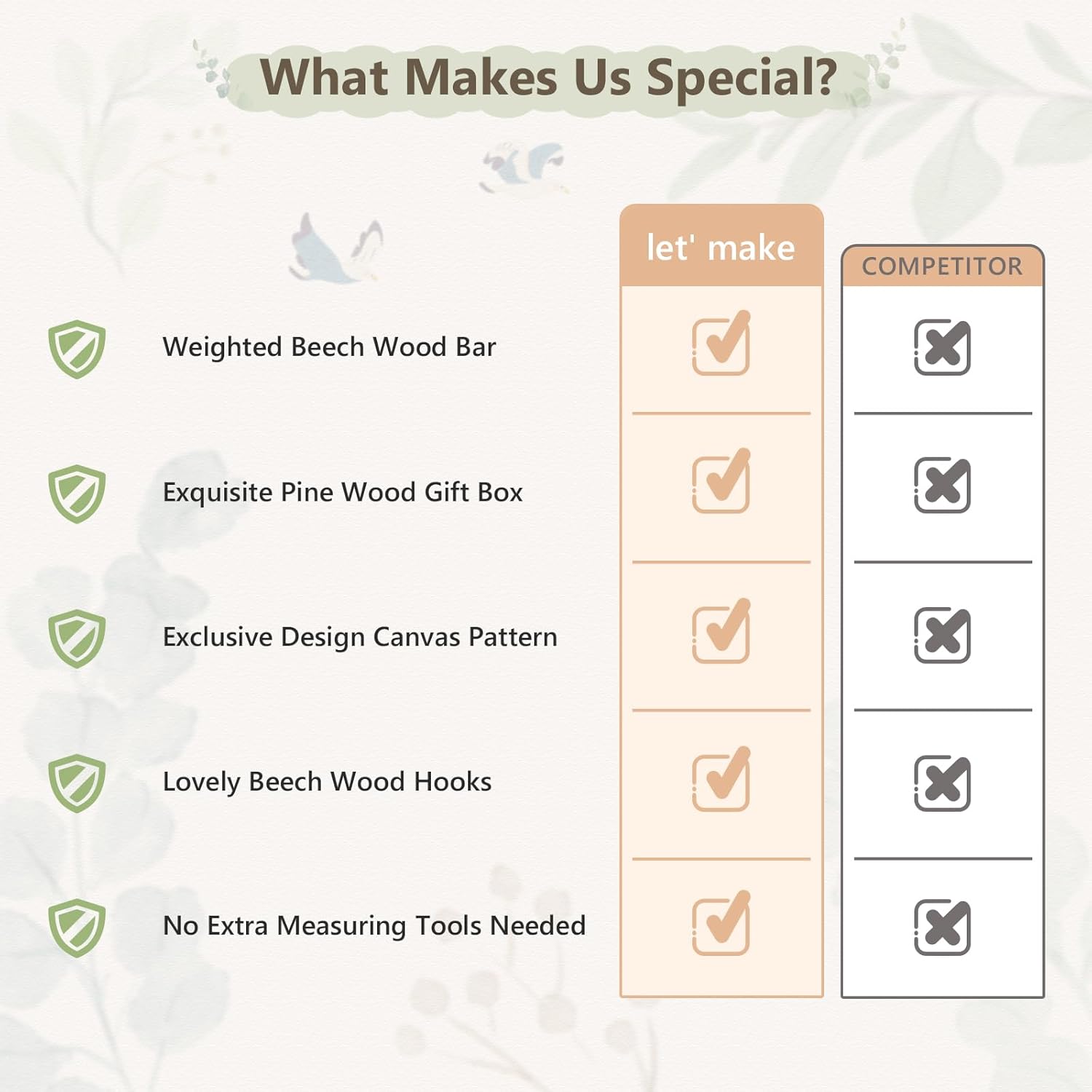 - 🌿𝑪𝒉𝒂𝒓𝒎𝒊𝒏𝒈 𝑫𝒆𝒔𝒊𝒈𝒏 𝑭𝒐𝒓 𝑾𝒂𝒍𝒍: Adorned With Hand-Painted Rainbow And Eucalyptus Designs On Durable, Waterproof Canvas, Matched With Rainbow/Bird Beechwood Hooks. The Soothing, Neutral Color Make Our Growth Chart Perfect Fits Both Little Boys And Girls Nursery Decor, Adding A Warm Touch To Your Home While Complementing Bohemian-Style Decor.