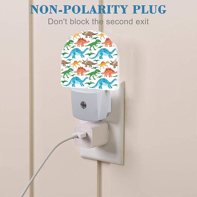 - [Dusk to Dawn Sensing]: Cartoon Cute Colorful Dinosaur Night Light equipped with a dusk to dawn sensing function, it will automatically turn on at night or in a dimly lit environment, and automatically turn off in the morning or in sufficient light. This smart sensor design saves power and is convenient, so you don't need to switch manually.