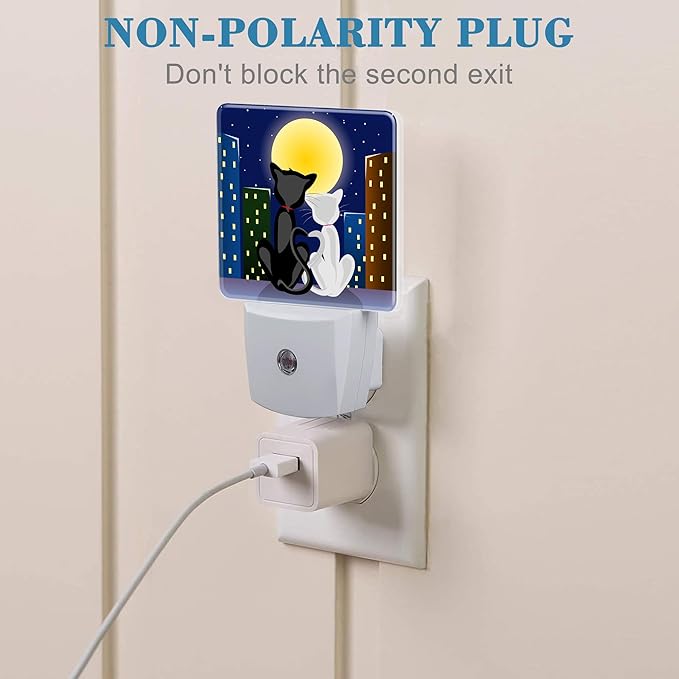 - [Energy Saving]: Made with high-quality plastic, this Romantic Couple Cats Under Moon nightlight has a long lifespan of over 20000 working hours without bulb replacement, and it consumes less than 50 cents annually for power consumption. Its well-designed mini outlook is space-saving and doesn't block the bottom outlet for other devices.