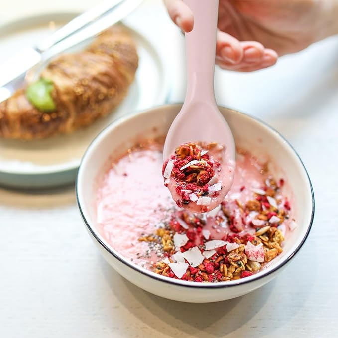 12 Pcs Kids Spoons and Forks Toddler Utensils Plastics Reusable Silverware Baby Cutlery Set Feeding Dinnerware Utensils BPA Free Microwave Dishwasher and Freezer Safe- Pink