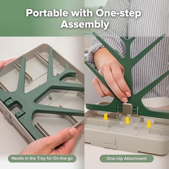 haakaa Baby Bottle Drying Rack, Space Saving Bottle Drying Tree for Bottles/Pump Parts/Pacifiers and Other Baby Essentials, Easy-Store Dryer Rack Great for Home & Travel, BPA Free (Forest Green)