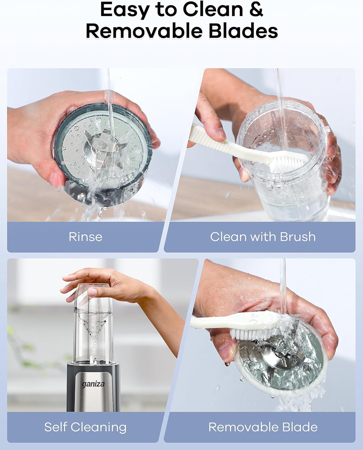 - POWERFUL MOTOR & 23000RPM HIGH SPEED: Max 900W motor, the Ganiza GB06 blender for smoothies is faster and stronger. With this smoothie blender, you can make smoothies in just few seconds. A quick solution for breakfast or afternoon tea.