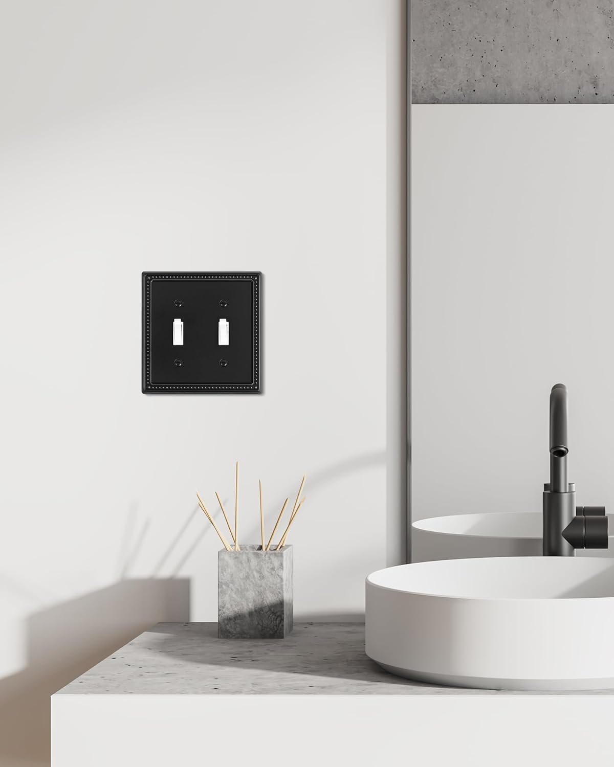 - Timelessly Elegant - The double light switch plate covers feature an exquisite black finish with a traditionally styled beaded border. Offering a functional yet elegant enhancement to your home decor. Stylish wallplate effortlessly blends practicality with a refined decorative accent and sophisticated charm.