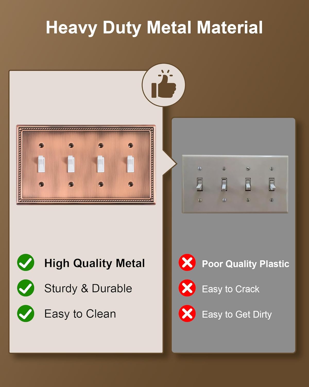 - Durable Metal Construction - Built to last, constructed from thick and sturdy metal, this wall plate cover ensures long-lasting durability and sturdiness, allows for easy cleanup and resistant to tarnishing and corrosion, not easy to break. Ensuring it remains a stunning addition to your home for years to come.