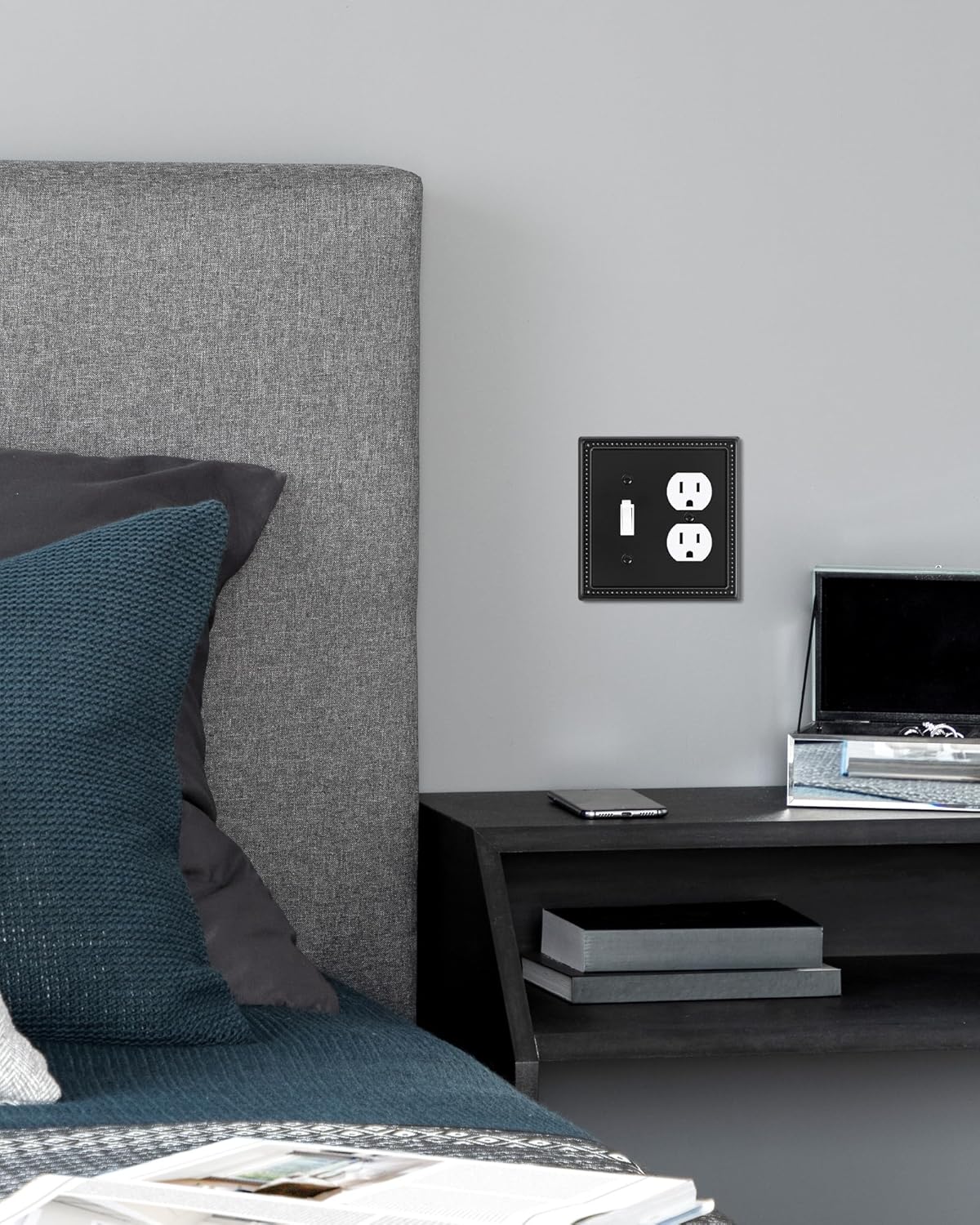 - Timelessly Elegant - The switch plates and outlet covers feature an exquisite black finish with a traditionally styled beaded border. Offering a functional yet elegant enhancement to your home decor. Stylish wallplate effortlessly blends practicality with a refined decorative accent and sophisticated charm.