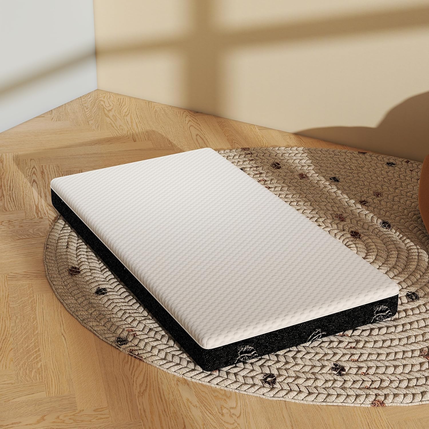 - 【Triple Layer Foam】 This advanced triple-layer mattress integrates gel-infused memory foam, open-cell memory foam, and a high-density support core. It optimizes temperature regulation by enhancing airflow and dissipating excess body heat, creating a cool and comfortable sleep environment for the baby. This reduces discomfort and frequent awakenings, ensuring uninterrupted sleep throughout the night.