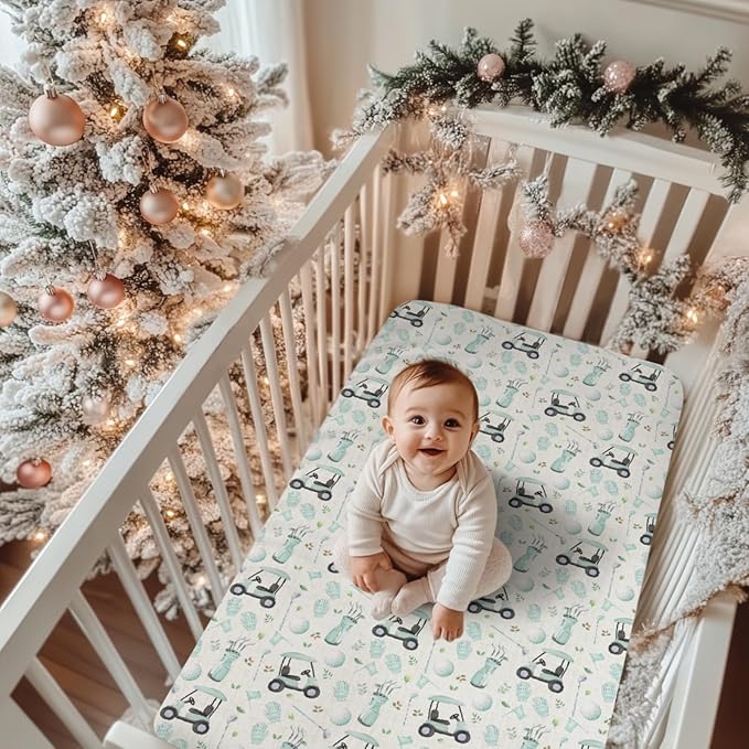 Golf Baby Crib Sheets for Boy Girl 28"x52" Sports Golfing Soft Stretchy Fitted Crib Mattress Cover Golf Lovers Gift Nursery Baby Sheet for Standard Crib and Toddler Bed Mattress Green