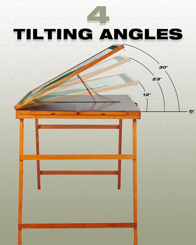 - 【Adjustable Tilt】Enjoy customizable comfort with a tilting surface that offers 4 adjustable positions, ranging from 0° to 30°. Find the perfect angle for a comfortable and enjoyable puzzle experience.