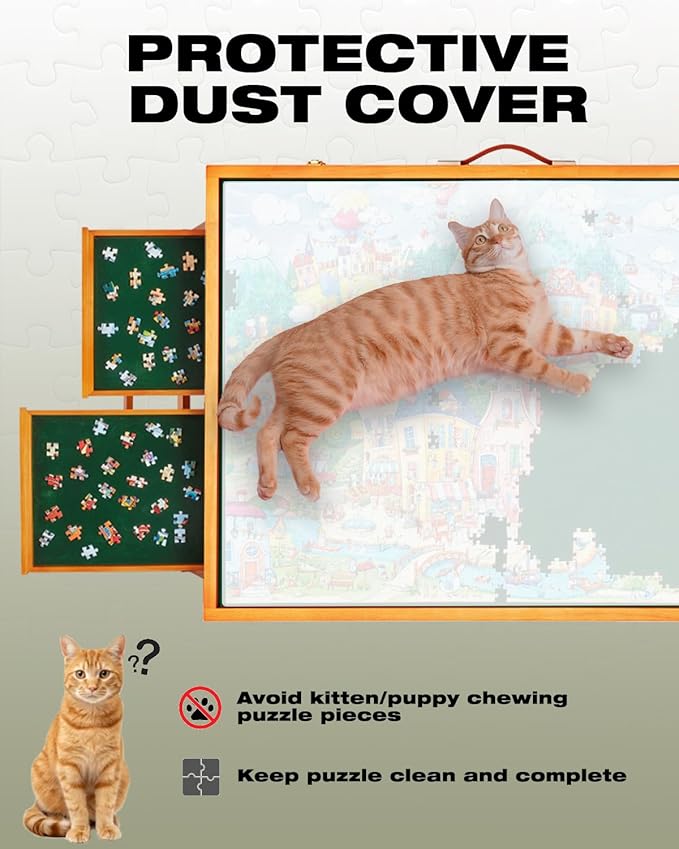 - 【Protect Your Unfinished Puzzle with a Cover】Comes with a protective cover to place over your puzzle when not in use, keeping it safe from dust, pet hair, or accidental bumps. You can pause and store your puzzle securely at any time.