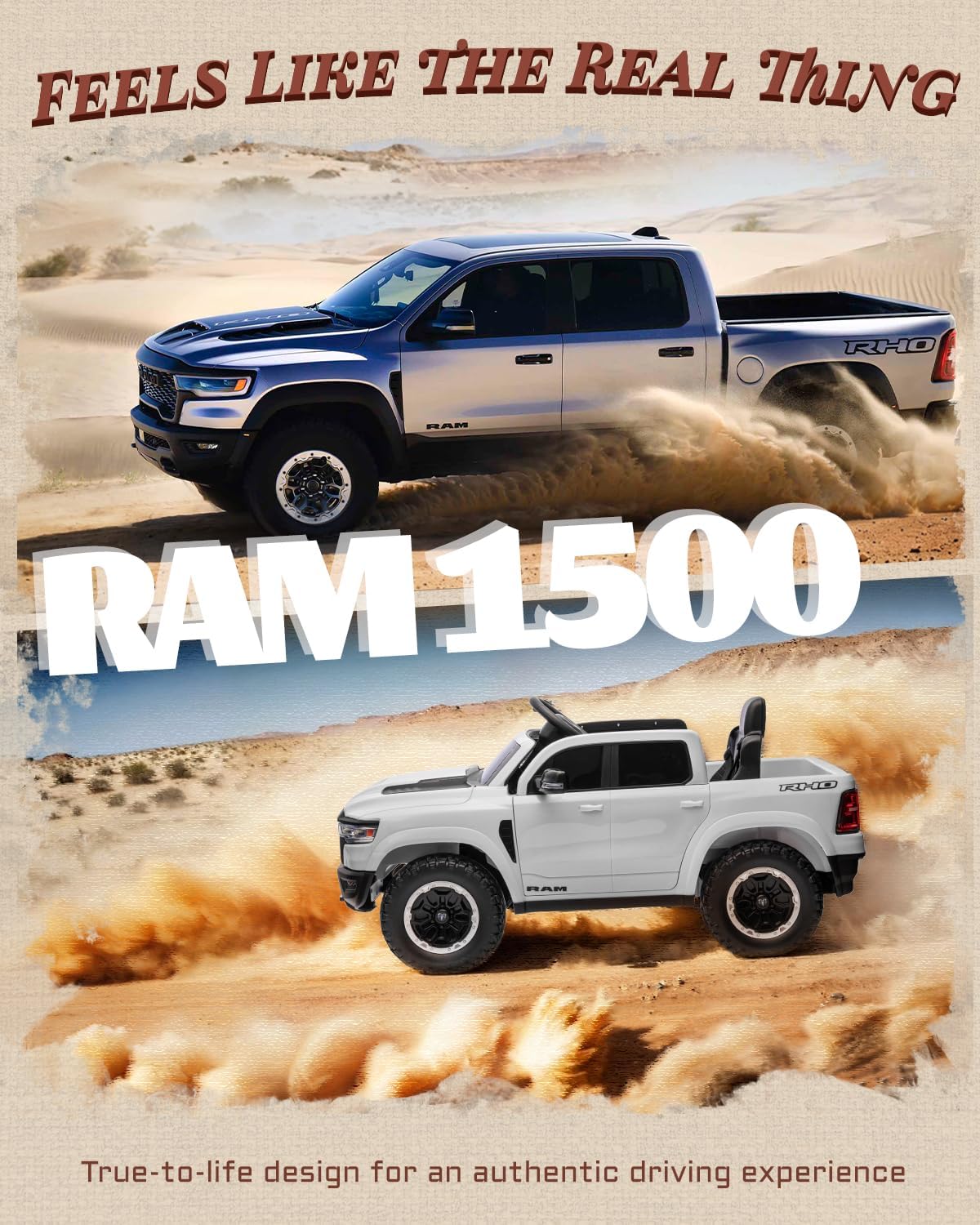 - AUTHENTIC RAM 1500 DESIGN: This officially licensed kids electric vehicles perfectly captures the essence of the Ram 1500. It features key-start ignition, a realistic gear shifter, and independently controlled LED headlights. From the lifelike exterior to the driving mechanics, every detail has been faithfully recreated to offer a truly premium driving experience.
