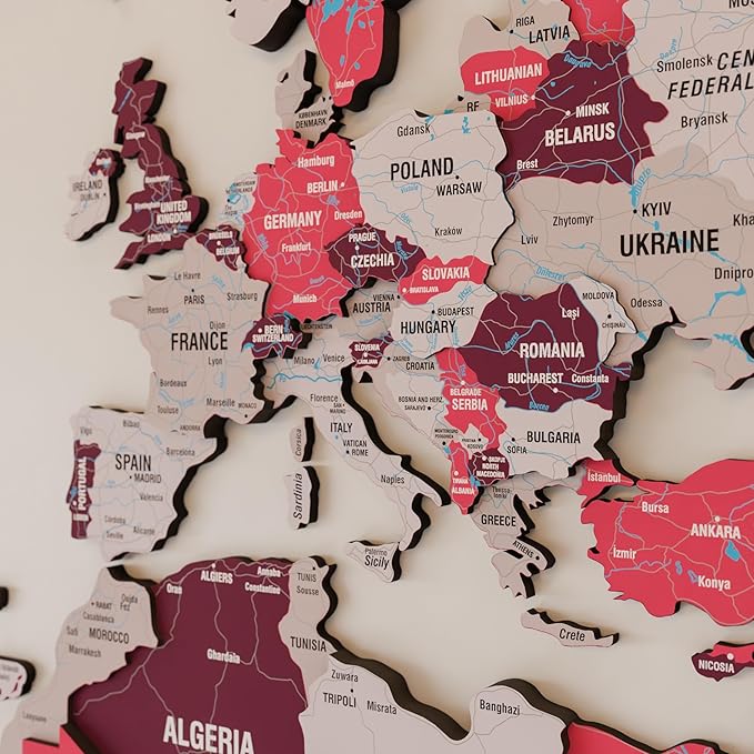 Colorfull Worlds 3D Wooden World Map Wall Art - Premium Multicolored World Travel Map for Wall Decor with Push Pins- Ideal Housewarming Gift & Travel Tracker (Medium, Crimson)