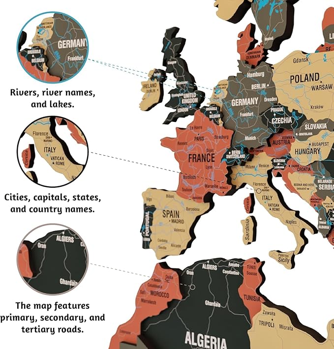 Colorfull Worlds 3D Wooden World Map Wall Art - Premium Multicolored World Travel Map for Wall Decor with Push Pins- Ideal Housewarming Gift & Travel Tracker (XXLarge, Sage)