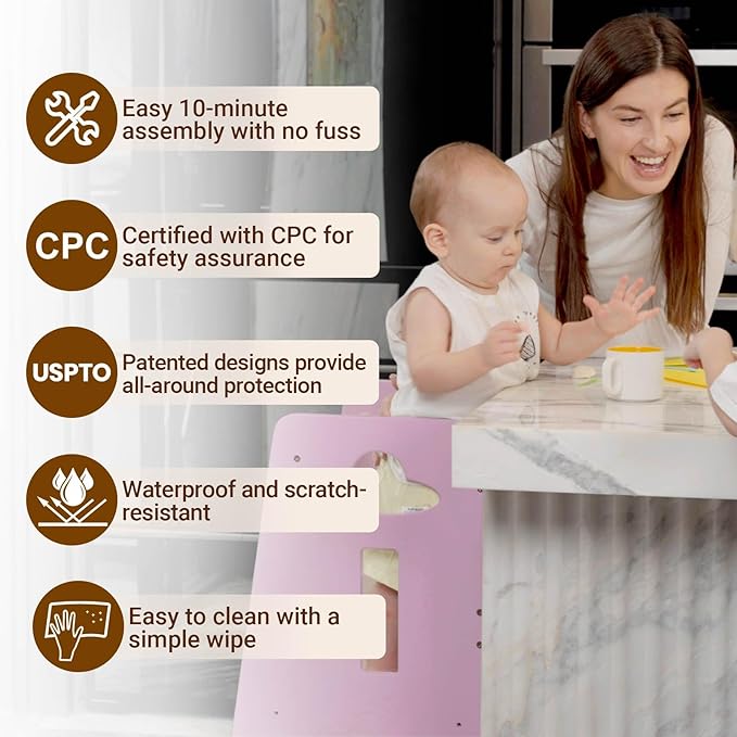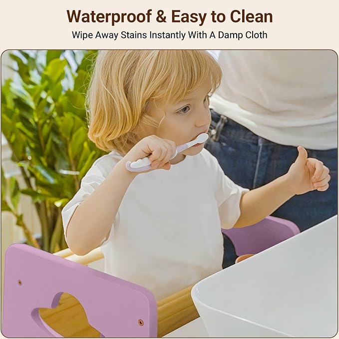 - Hands-Free Convenience & Safe Engagement: This stable learning stool frees up parents' hands by letting kids join kitchen activities instead of tugging at their parents' legs or constantly asking to be picked up. It also keeps them within sight at all times, ensuring their safety.