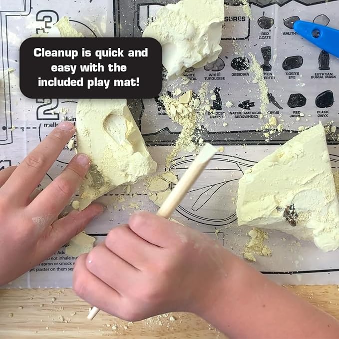 - Mess-Free Play Mat: Keep your play area neat and clean with the included mat. Place your gem dig kit block and tools in the designated areas on the mat before getting to work.